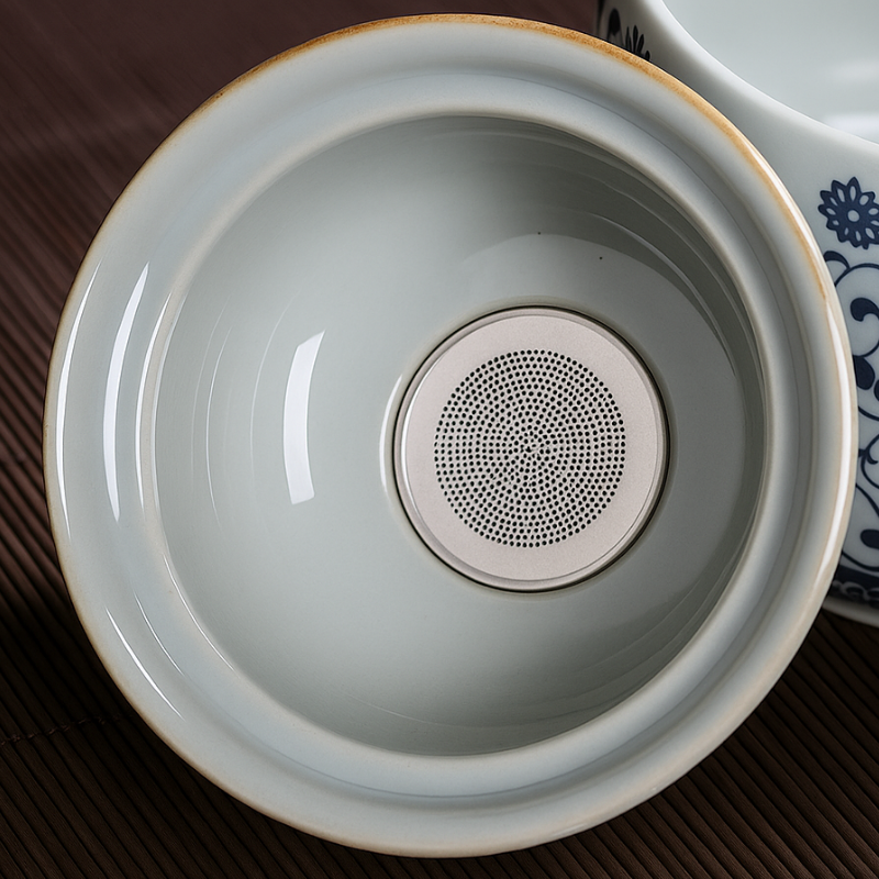 Com seu sistema de escoamento automático, basta girar o Gaiwan para que o chá infundido seja servido com suavidade e precisão. O infusor rotativo semi-automático traz praticidade ao preparo, permitindo que cada etapa seja feita com elegância e sem esforço. Um design inteligente que une tradição e funcionalidade, transformando o ato de servir em um gesto de refinamento.