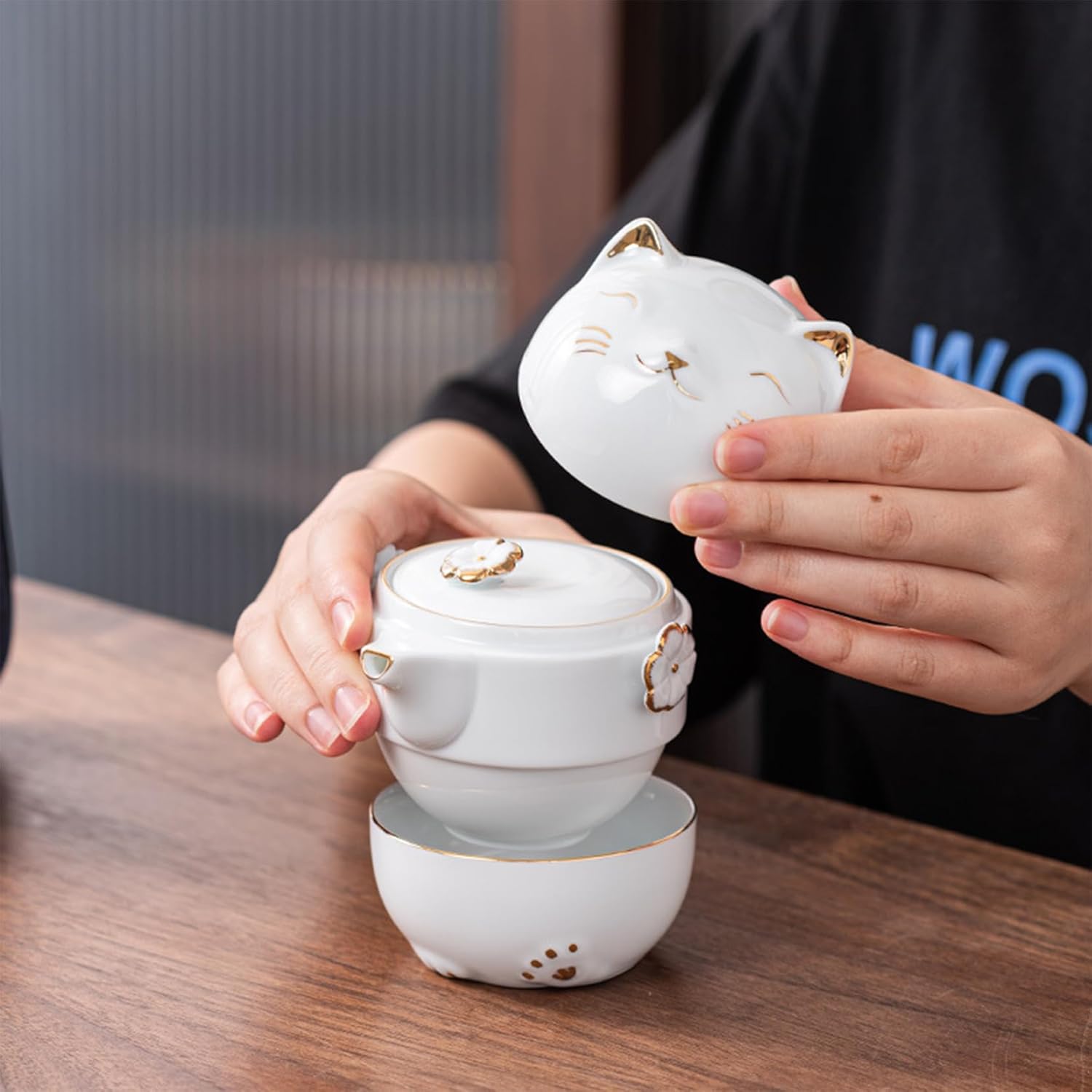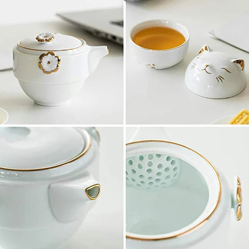 Design de Gato: Design de gato adorável e prático para uma experiência de chá única.
